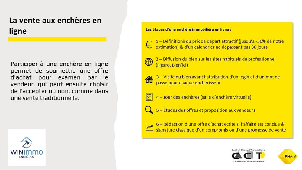 Une nouvelle façon de trouver des acquéreurs qualifiés par la vente interactive ou vente aux enchères en ligne sans frais complémentaires que ceux issues de la vente (frais d'entremise et frais de notaires).